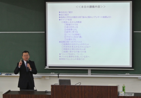講義では、福大生の優れている点、そうでない点の現状分析を踏まえてのアドバイスと、