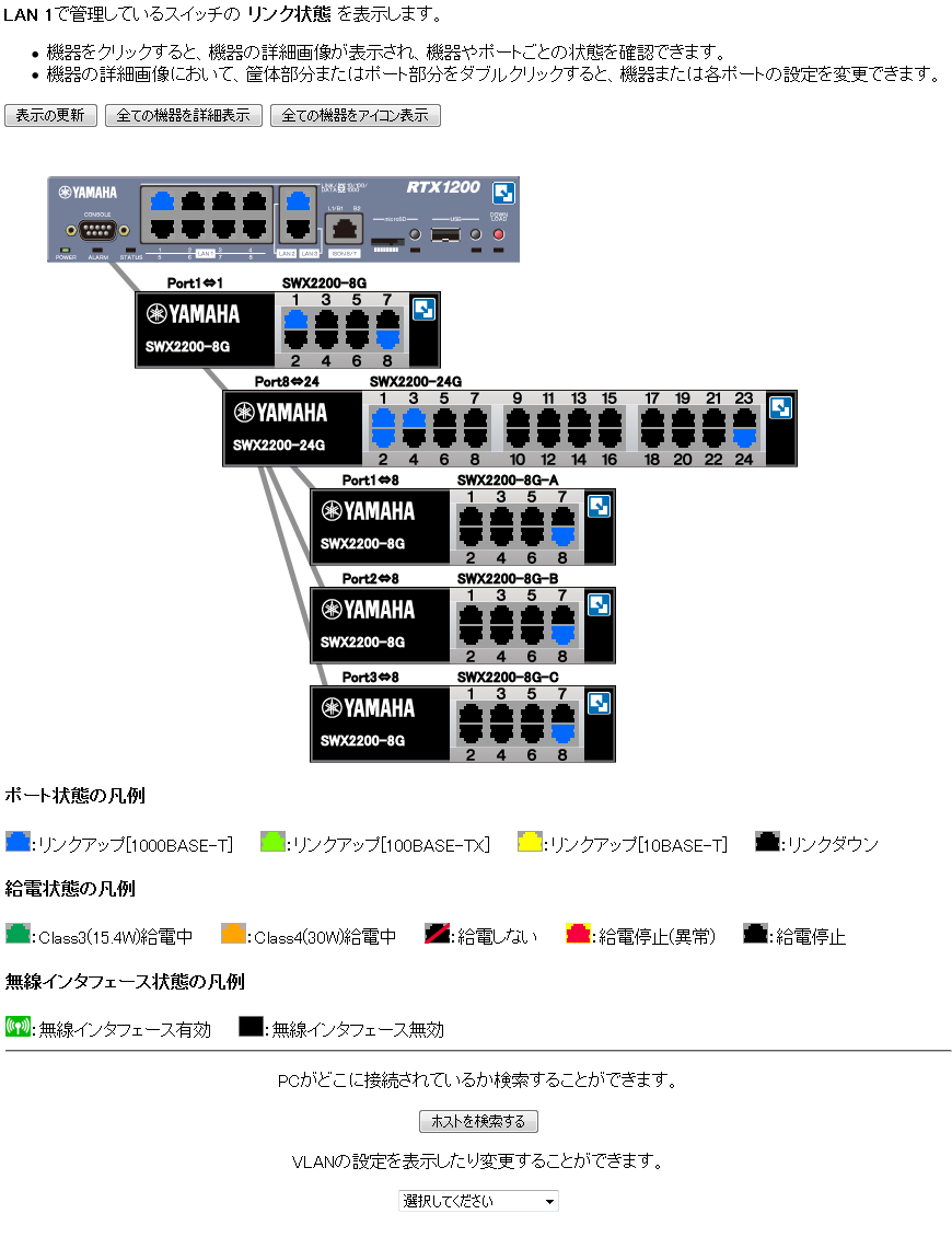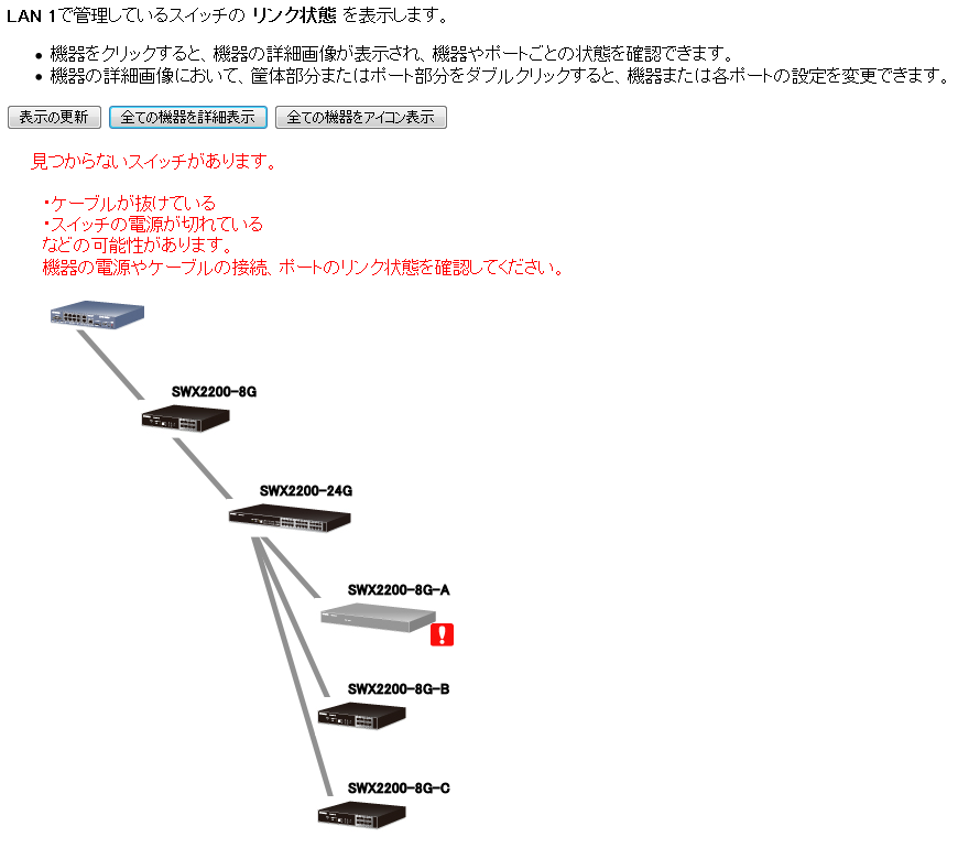 HUB同士の繋がりや、HUBのポートの状態が「見える」ようになります。