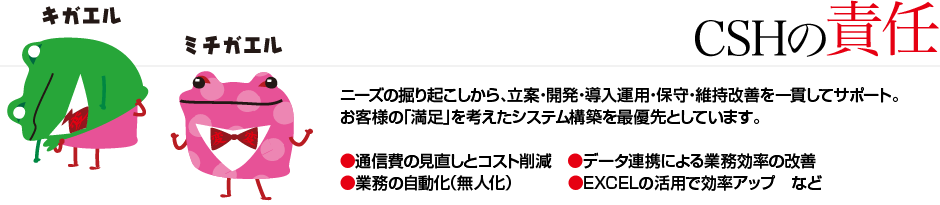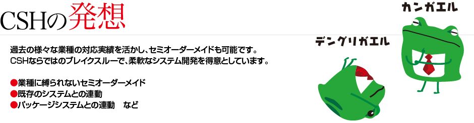過去の様々な業種の対応実績を活かし、セミオーダーメイドも可能です。CSHならではのブレイクスルーで、柔軟なシステム開発を得意としています。